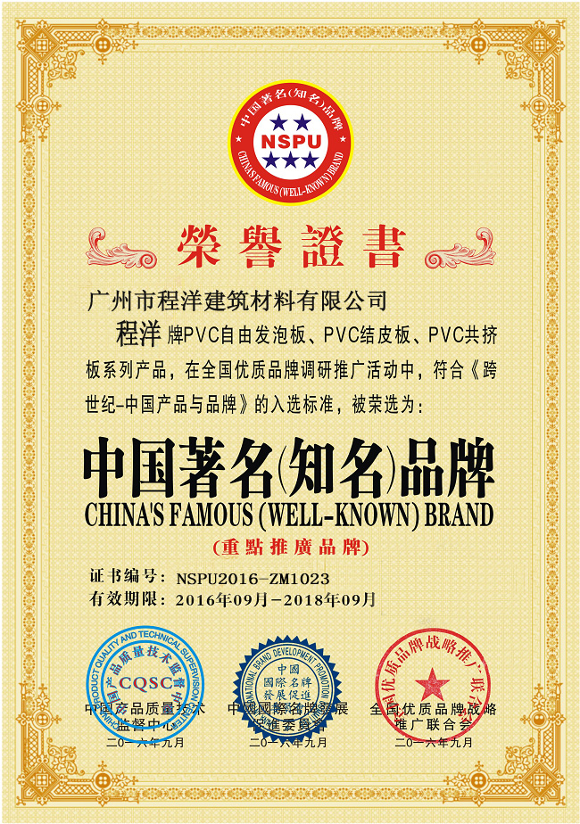 廣州市程洋新型材料有限公司專業研發和生產PVC共擠發泡板,結皮發泡板,自由發泡板,客車內裝飾板,PVC覆膜板,雕刻屏風雕花板,PVC櫥柜板,PVC防水浴室柜板,皮雕軟包底板以及發泡異型材等產品,厚度范圍為1mm~38mm。pvc板材全部采用無鉛環保型助劑生產,綠色環保, 符合歐美國家檢測要求,產品已通過ISO9000質量體系認證,甲醛測試報告,ISO證書,阻燃測試報告,SGS 測試報告,握釘力測試報告,ROHS測試報告等證書,并廣泛應用于雕刻屏風、復合(貼面)板、PVC燈飾、汽車內裝飾、櫥柜,浴室柜,廣告UV、校園文化,裝潢天花吊頂,高速公路隔音板,戶外攀登(巖)及工業應用等領域。